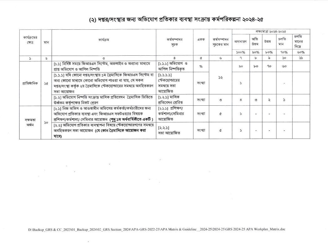 | ২৬ | জিআরএস সংক্রান্ত বার্ষিক কর্মপরিকল্পনা ২০২৪-২০২৫ |